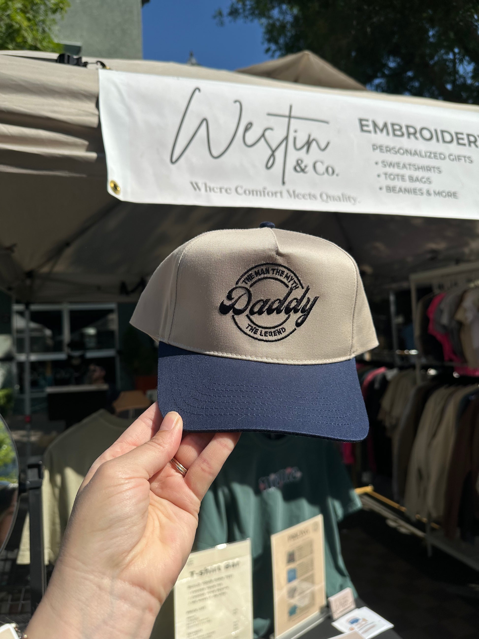 Celebrate Dad in style with our best-selling “The Man. The Myth. The Legend. Daddy” cap — now available in a classic two-tone design just in time for Father’s Day! 🎁